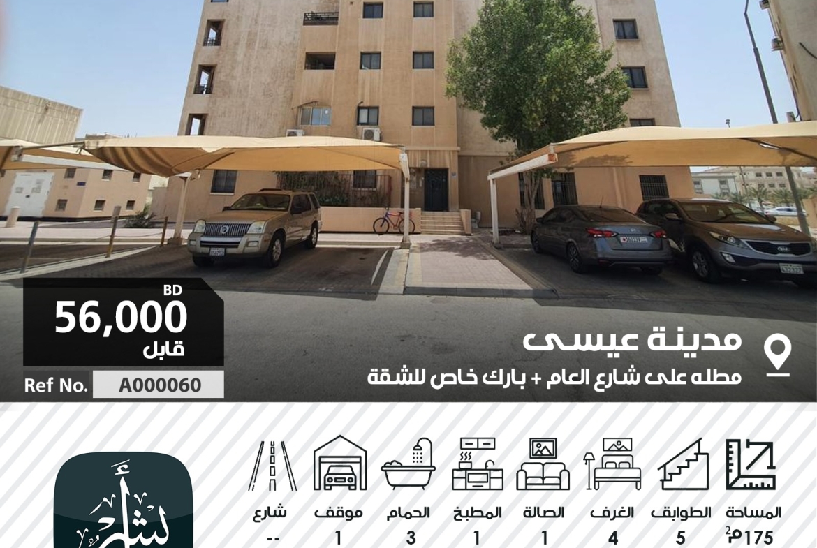 شقة للبيع في مدينة عيسى مطلة على الشارع العام