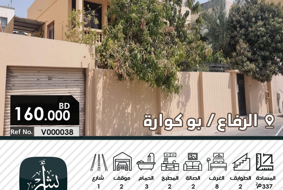 للبيع فيلا في الرفاع بوكوارة مكونة من 8 غرف وثلاثة حمامات المطلوب 160.000