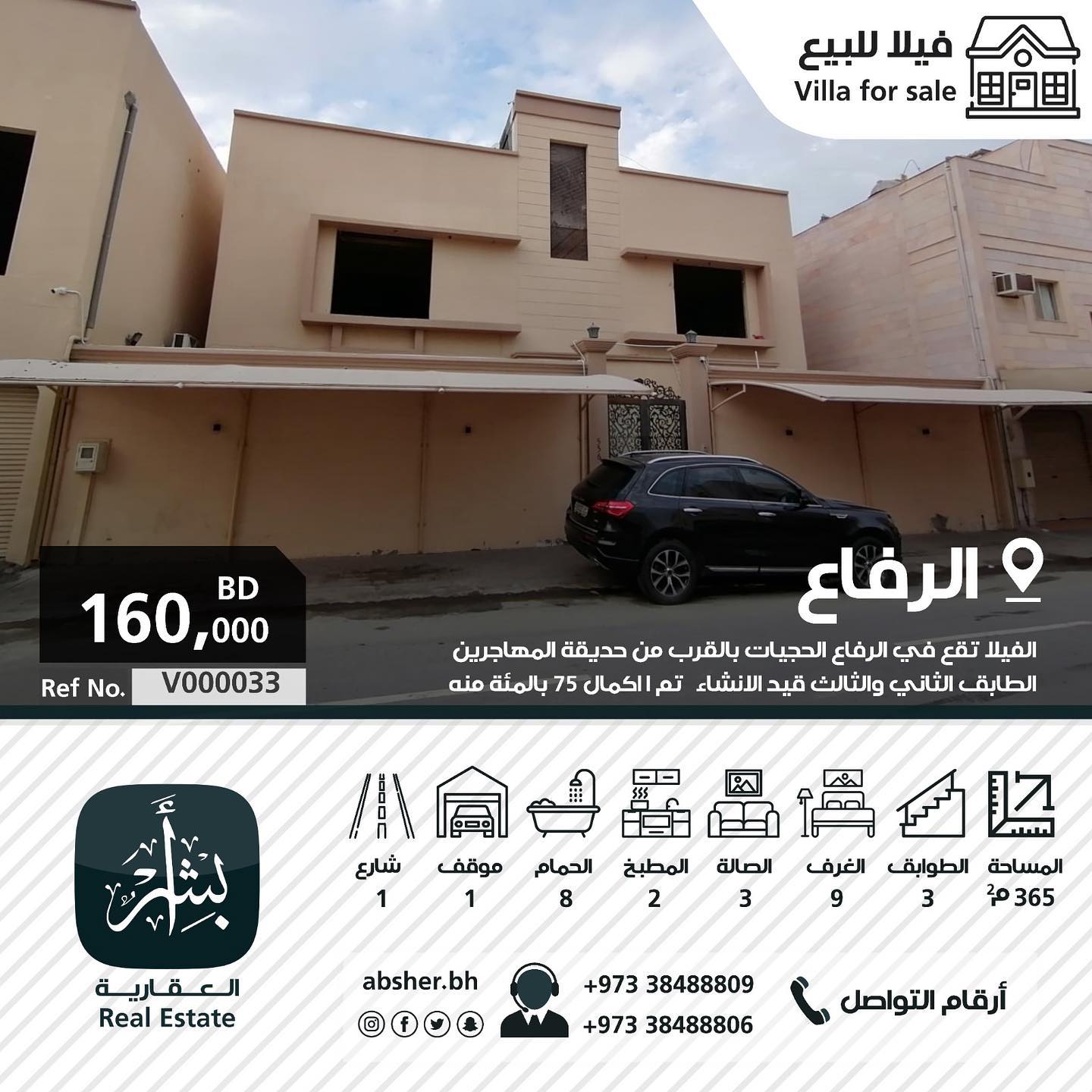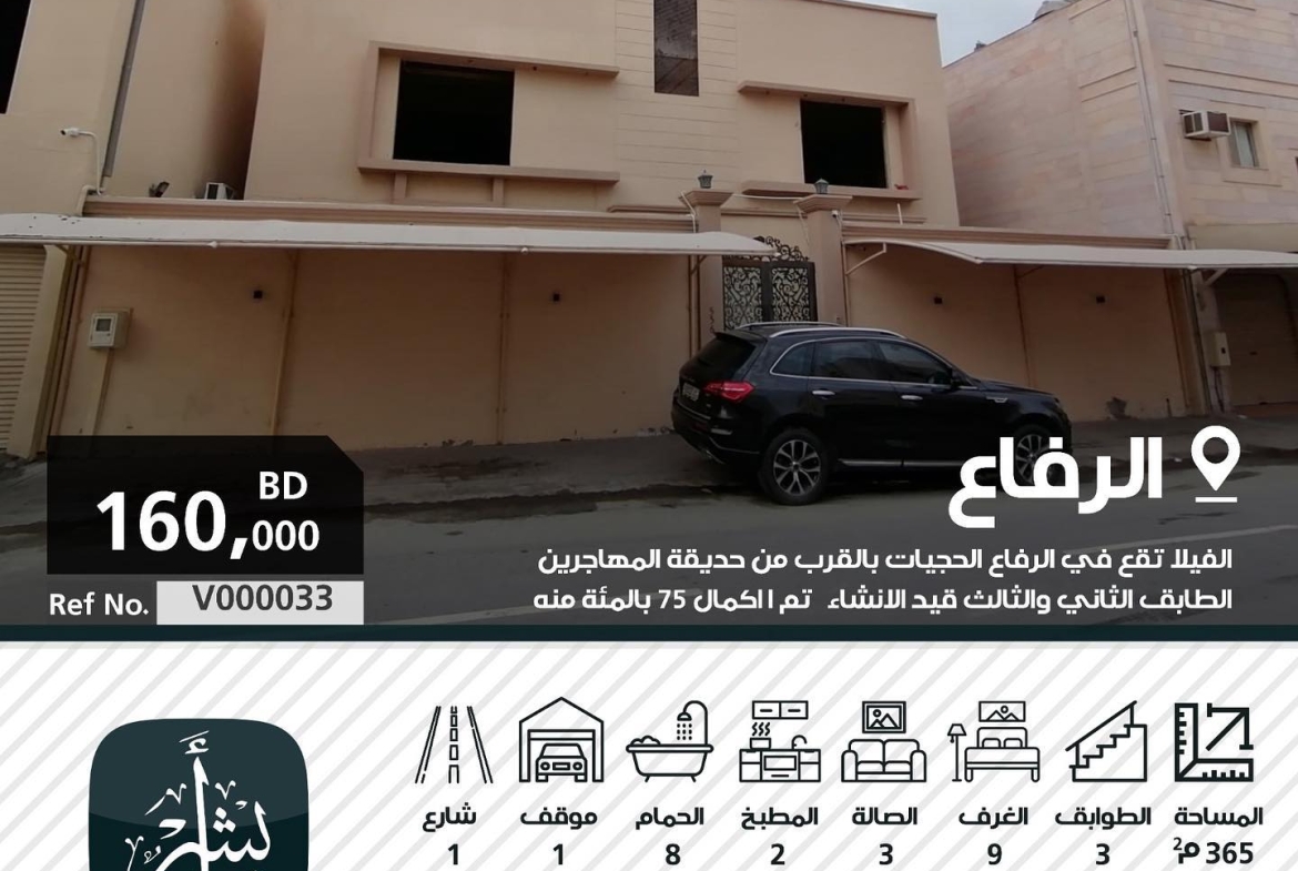 فيلا للبيع في الرفاع – الحجيات ، قرب حديقة المهاجرين