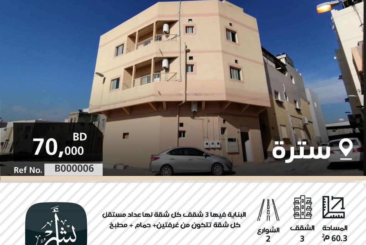 المساحة 60.3 م ، 3 شقق ، على شارعين